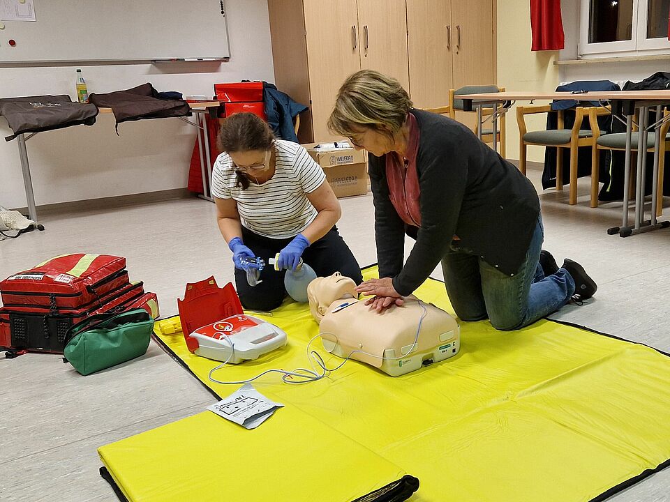 Damit wir in jeder Lage sicher handeln können, gehört neben der psychologischen Kompetenz auch medizinisches Basiswissen dazu. Besonders wichtig ist der routinierte Umgang mit dem Automatisierten Externen Defibrillator (AED), den wir mit im Auto haben.