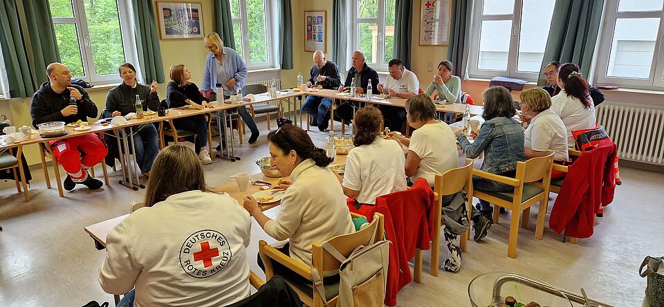 Als erstes wurden verschiedenste organisatorische Dinge besprochen, Belehrungen unterschrieben und die Führerscheine kontrolliert, damit bei uns als Einsatzkräfte wirklich alles vorhanden und in Ordnung ist. Da es bei uns im Team auch immer mal einen Wechsel der Einsatzkräfte gibt, müssen die Fotos für die Website regelmäßig aktualisiert werden. Ein großes Dankeschön an unseren Fotografen Robert Bachmann, der uns gekonnt ins rechte Licht rückt und uns in Szene setzt. Im Anschluss gab es ein gemütliches Beisammensitzen, zu dem jeder etwas zum großen Buffet beisteuerte. Es war eine riesige und absolut lecker Auswahl. Großes Lob und auch ein Dankeschön an alle, die so leckere Dinge mitgebracht und uns dieses Wahnsinnsbuffet ermöglicht haben.