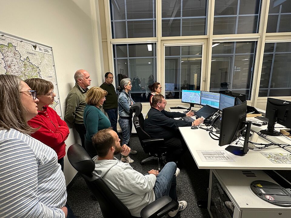 Bisher war die integrierte Leitstelle (kurz ILS), oberhalb der Feuerwehr in der Berliner Allee untergebracht. Da dort der Platz allmählich für die vielen Disponenten und Mitarbeiter zu eng wurde, musste umgezogen werden. Wir durften uns als Team die neue Leitstelle anschauen, die sich nun im Glaspalast befindet. Ein sehr netter Mitarbeiter dort hat uns viel erklärt und uns die Räumlichkeiten gezeigt. In der integrierten Leitstelle kommen pro Tag ca. 650 Notruf-Anrufe an, ebenso ca. 250 sonstige Anrufe, die alle von den Mitarbeitern dort bewältigt werden müssen. Immer ruhig, sachlich und mit allerhöchster Aufmerksamkeit. Täglich koordinieren Sie ca. 300 Notfall-/Notarzteinsätze, ca. 110 Krankentransporte und ca. 28 Feuerwehreinsätze. Eine Wahnsinnsleistung, was die Mitarbeiter und Mitarbeiterinnen hier leisten, um uns allen unter Umständen das Leben zu retten. Am Ende durften wir mit dem Mitarbeiter gemeinsam einen einkommenden Einsatz simulieren, um einmal zu sehen, was im Hintergrund dafür getan wird, dass alles seinen korrekten Weg geht, genügend Rettungsmittel vorhanden sind und am Ende ein guter Einsatz dabei rauskommt.